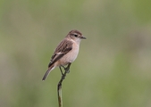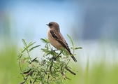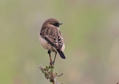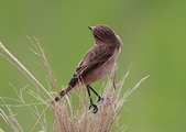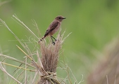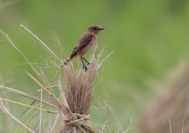 ◆ノビタキやっと到来!近場を走行中に田んぼの畦草に、姿が一羽2羽・・・3羽。なぜかどこの田んぼも畦草がきれいに刈り取られ、ノビタキが止まる丈の突出した雑草が消失。仄聞したところでは、地域の田んぼ(私有地)の農道・水路や畦道の管理などに、公的補助金が出るようになって、最近にわかに管理がゆき届きだした?らしいのだが・・・ノビタキ君にとっては、餌場での絶妙な足場を失うことになっている。